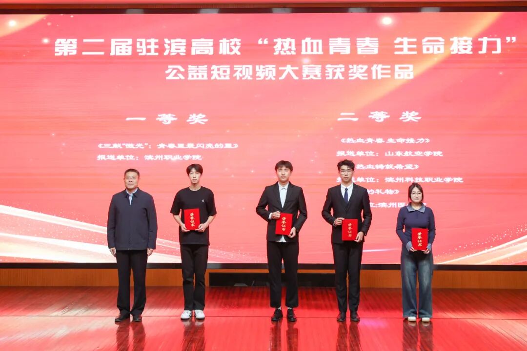 活动上,还对第二届驻滨高校“热血青春 生命接力”公益短视频大赛一、二等奖的作品进行展播,其中,滨州职业学院推报的《三献“微光”:青春里最闪亮的星》斩获一等奖,同学们用镜头记录奉献瞬间,生动诠释了“三献”大爱。