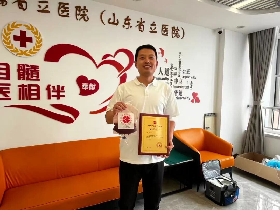 刘杰是市政府办公室市公共资源交易中心的工作人员,是我市第87位造血干细胞捐献者,11月7日在山东省立医院完成造血干细胞采集,为一名13岁血液病患儿进行生命接力。作为一名党员干部,他恪尽职守、务实担当,当得知自己的造血干细胞与素不相识的患者配型成功后,他毫不犹豫响应捐献号召,积极配合各项体检和准备工作,用大爱善举彰显了新时代党员干部的责任与担当。