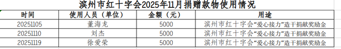 滨州市红十字会2025年11月捐赠款物使用情况公示