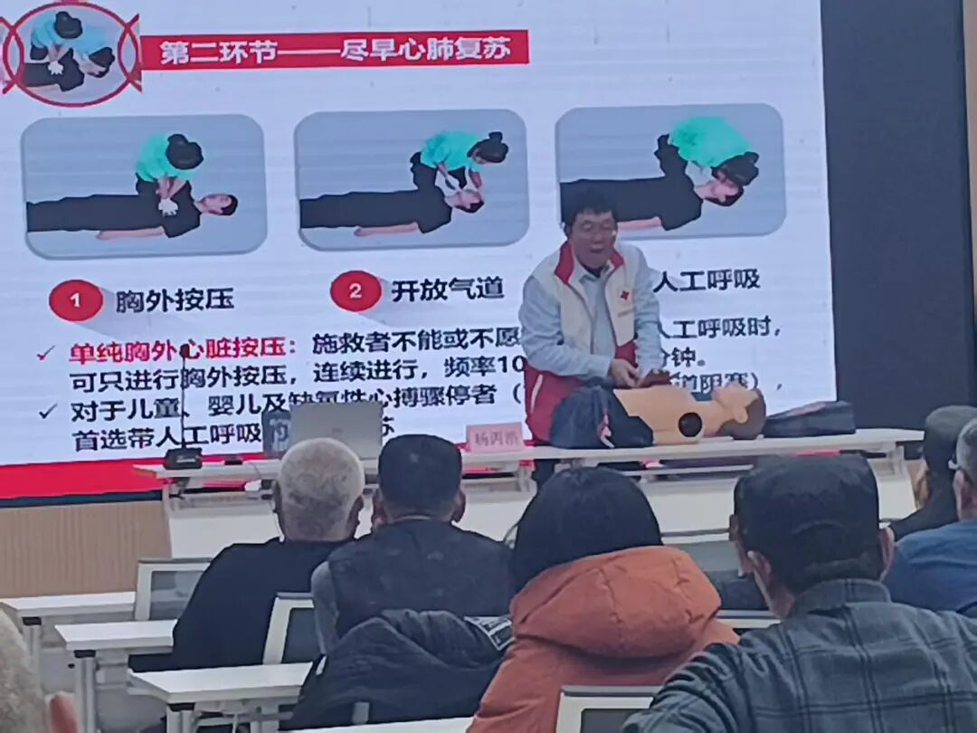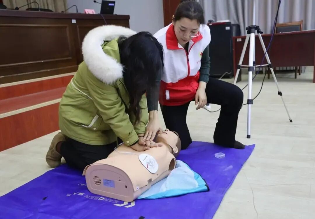 12月12日,滨城区彭李街道红十字会在大河社区开展“红十字”救护员培训。
