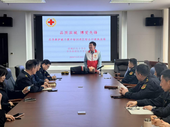 3月20日,滨城区红十字会对区综合行政执法局工作人员开展应急救护培训。